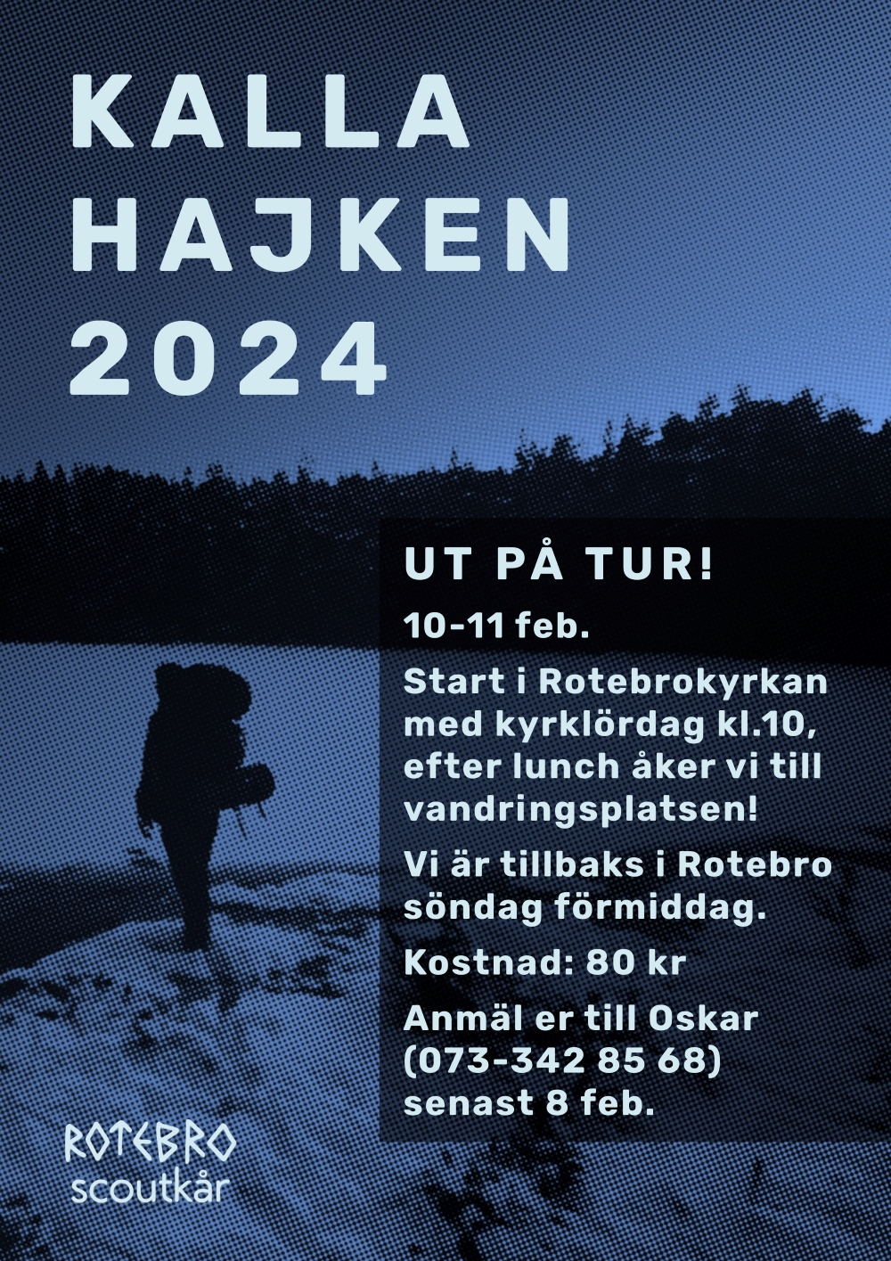 Jonathan Fridstrand Äventyrare 02 februari 2024 02 februari 2024 Träffar: 2742 Kalla hajken 2024 Skriv ut E-post Nästa helg är det dags för hajk! Kårens Äventyrare och Utmanare bjuds in, vi ses! Läs mer: Kalla hajken 2024